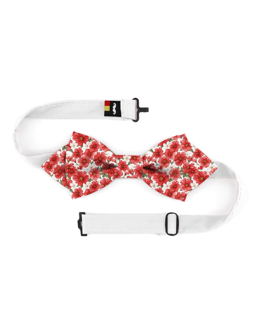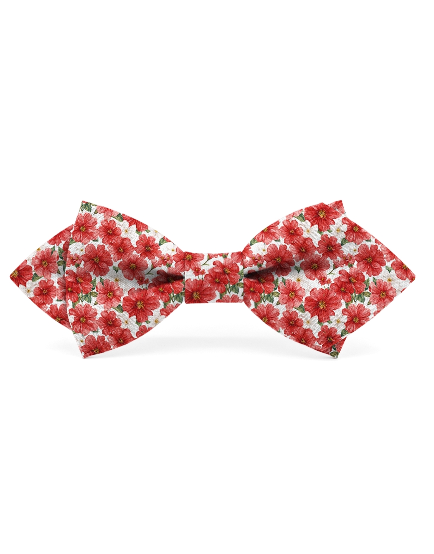 CADOGAN - FLORAL BOW TIE - DIAMOND - RED & WHITE