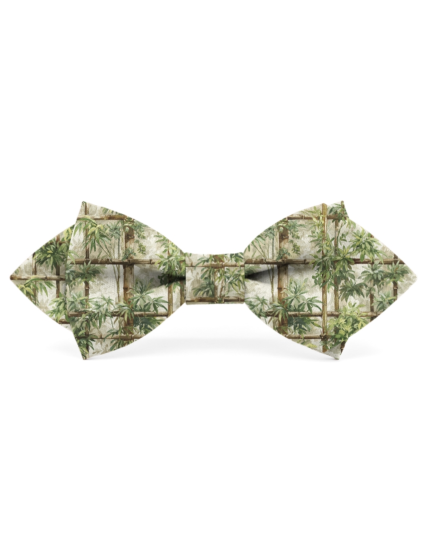 SHIJO - FLORAL BOW TIE - DIAMOND - GREEN & BEIGE