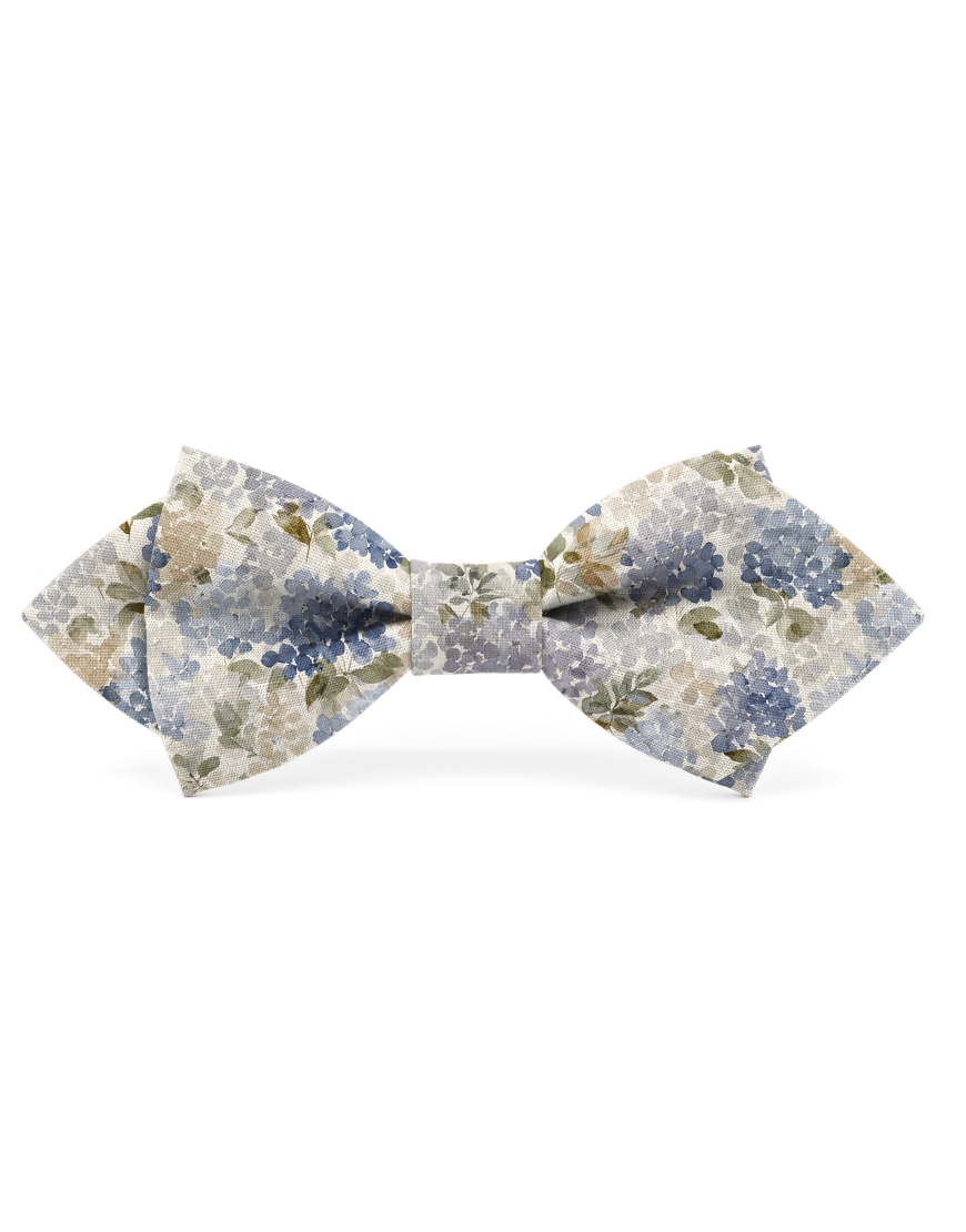 EBISU - FLORAL BOW TIE - DIAMOND - BLUE & BEIGE