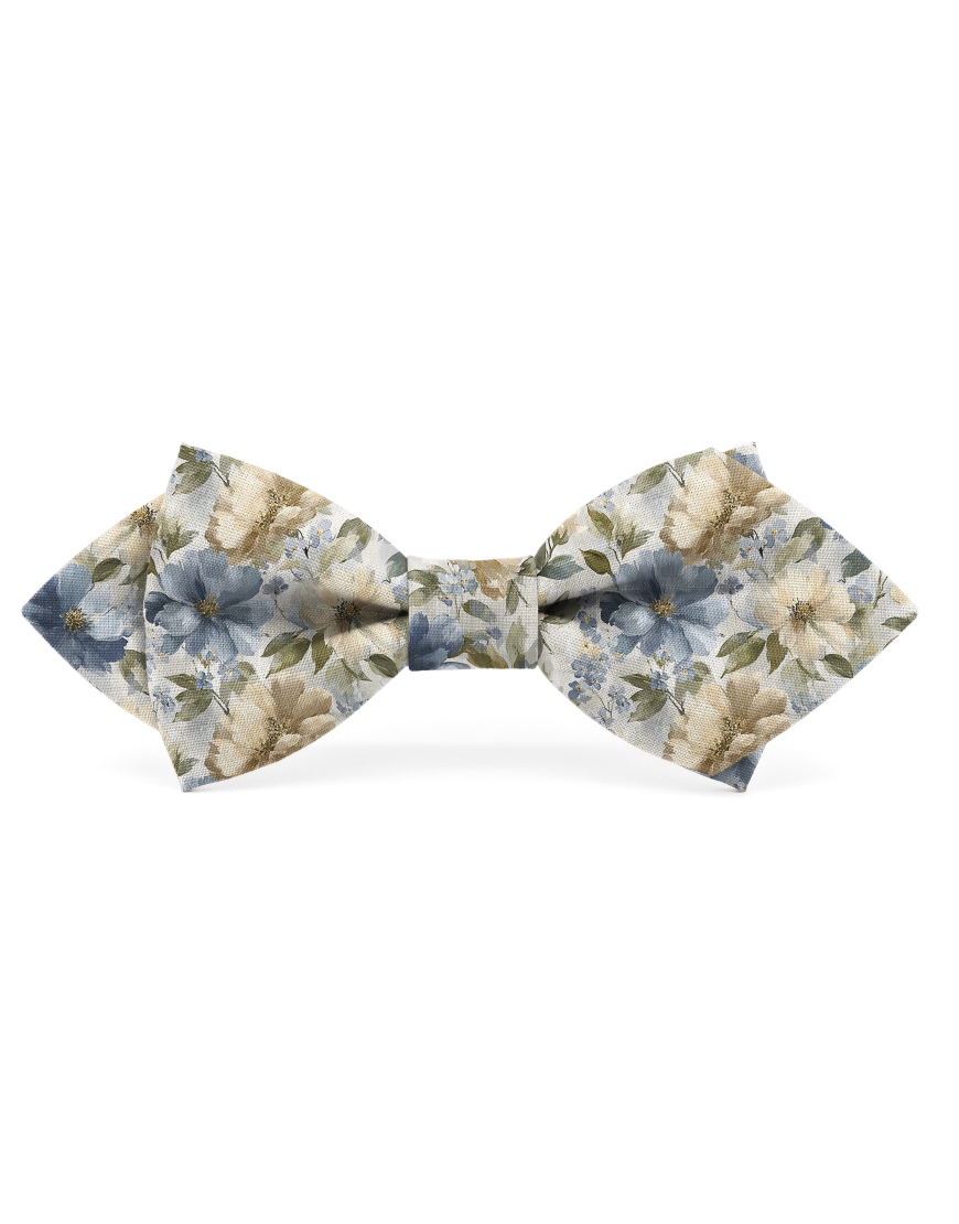 MONTAIGNE - FLORAL BOW TIE - DIAMOND - BLUE, BEIGE & KHAKI