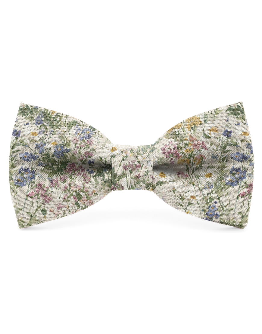 MURMUR - FLORAL LINEN BOW TIE - GREEN, PINK & BLUE