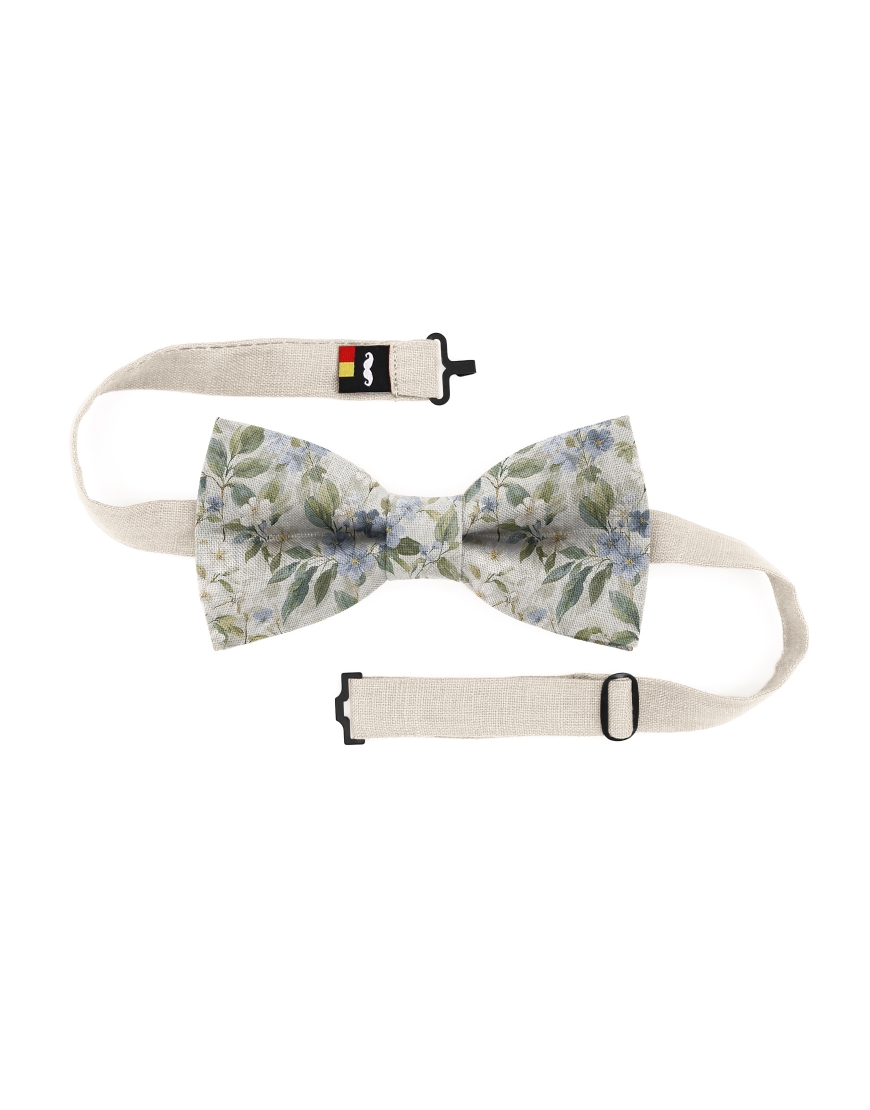 FLOW - FLORAL LINEN BOW TIE - BEIGE, GREEN & BLUE