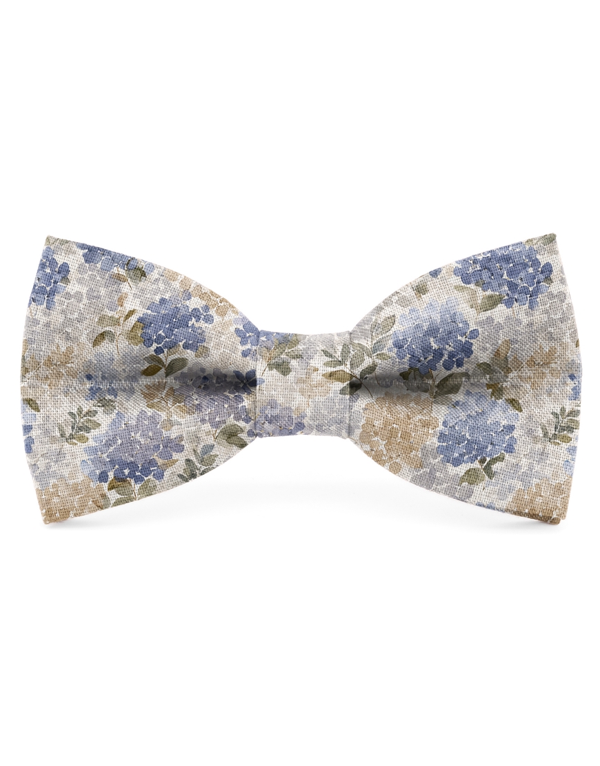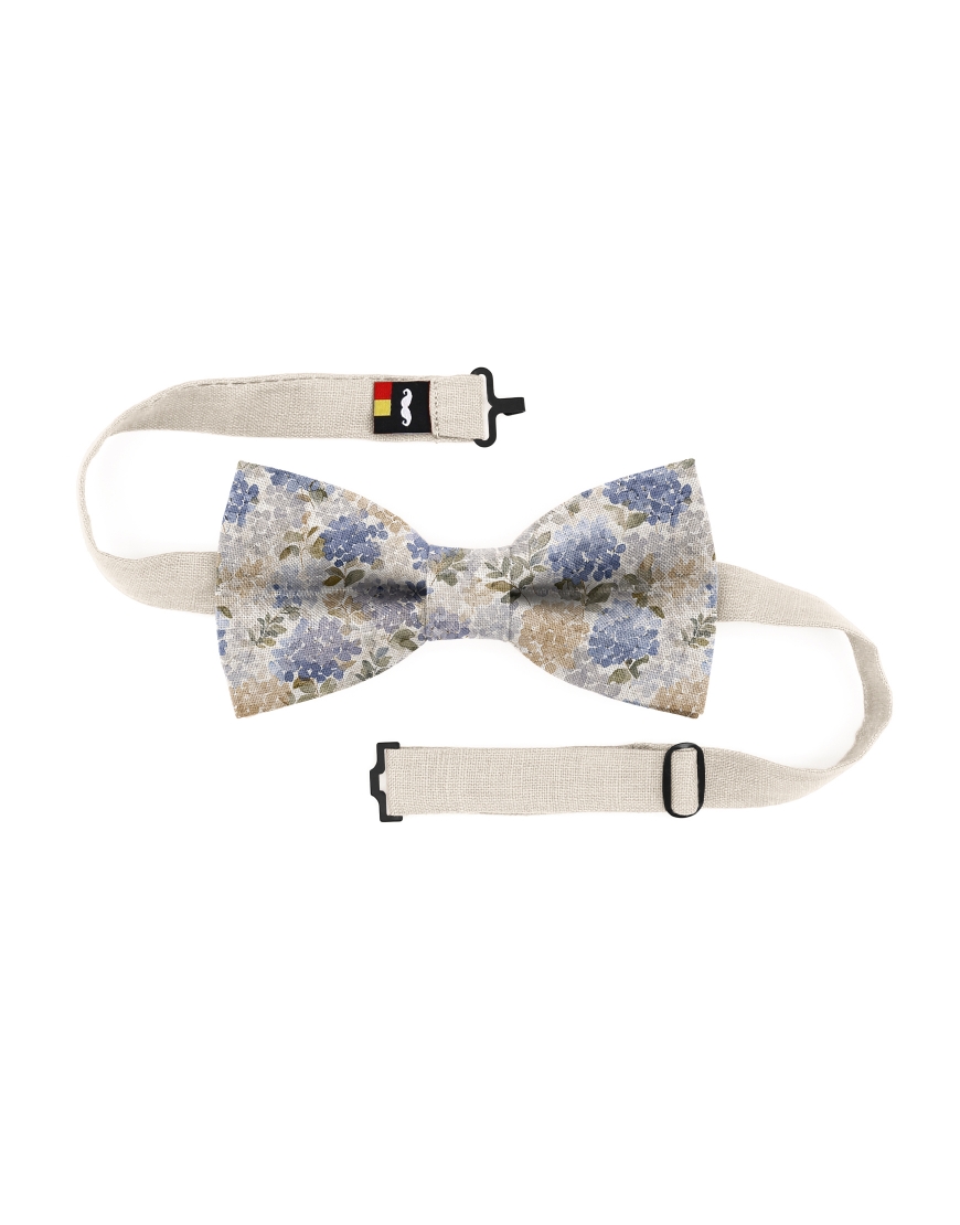 SERENE - FLORAL LINEN BOW TIE - BEIGE & BLUE