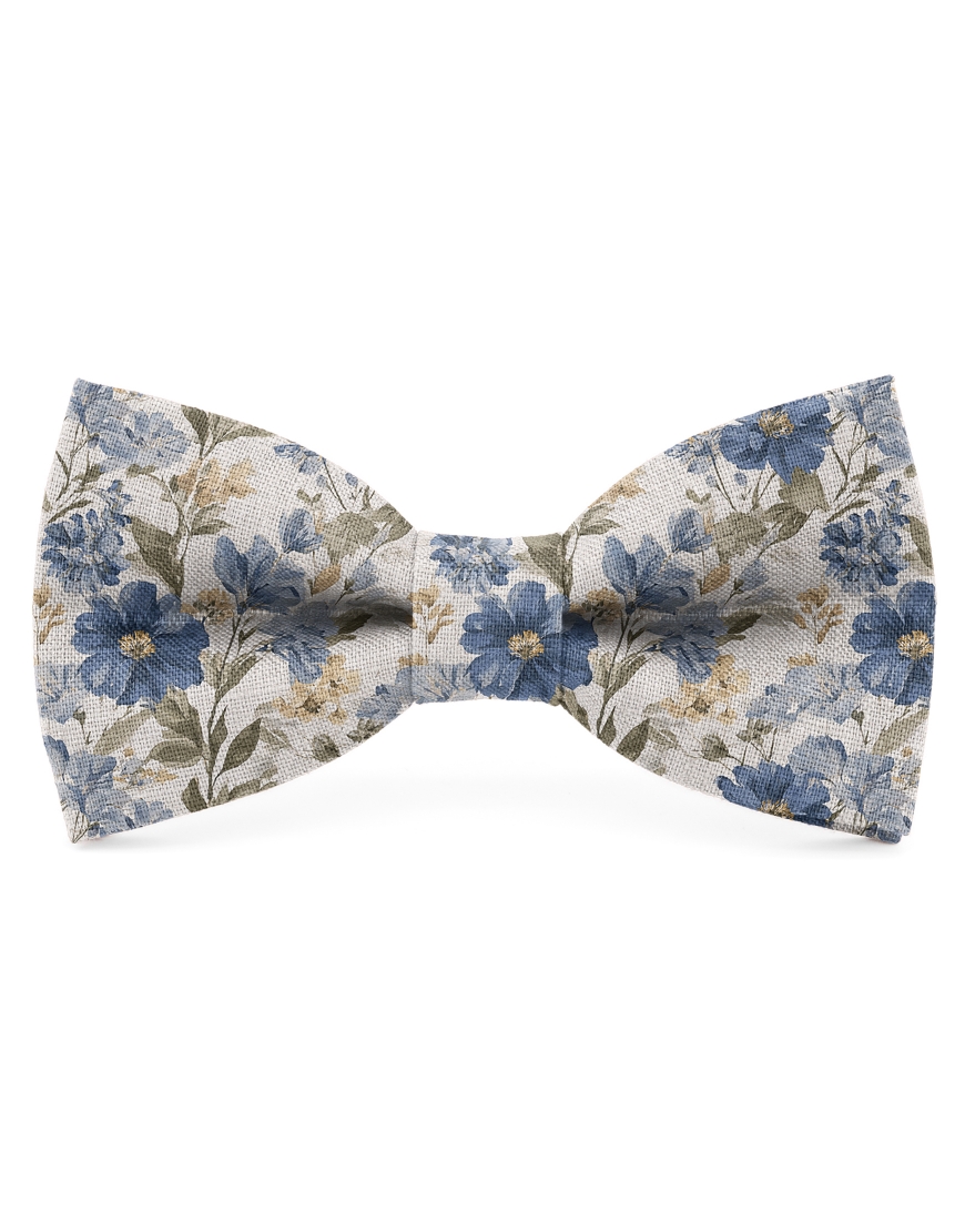 WONDER - FLORAL LINEN BOW TIE - BEIGE, BLUE & KHAKI