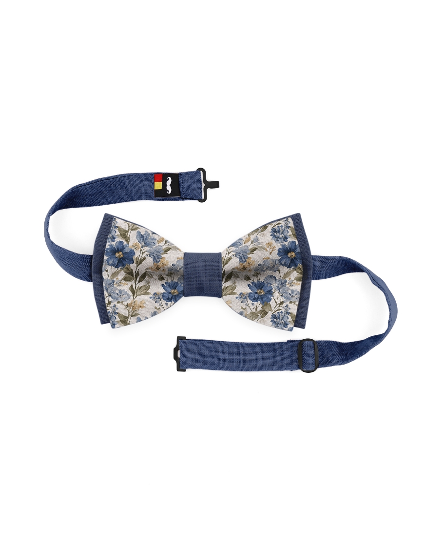 WONDER - BICOLOR FLORAL LINEN BOW TIE - BEIGE & BLUE