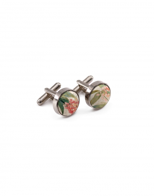 AZABU - FLORAL POCKET SQUARE - CORAL ORANGE & GREEN
