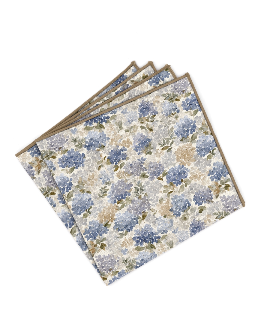 EBISU - FLORAL POCKET SQUARE - BLUE & BEIGE