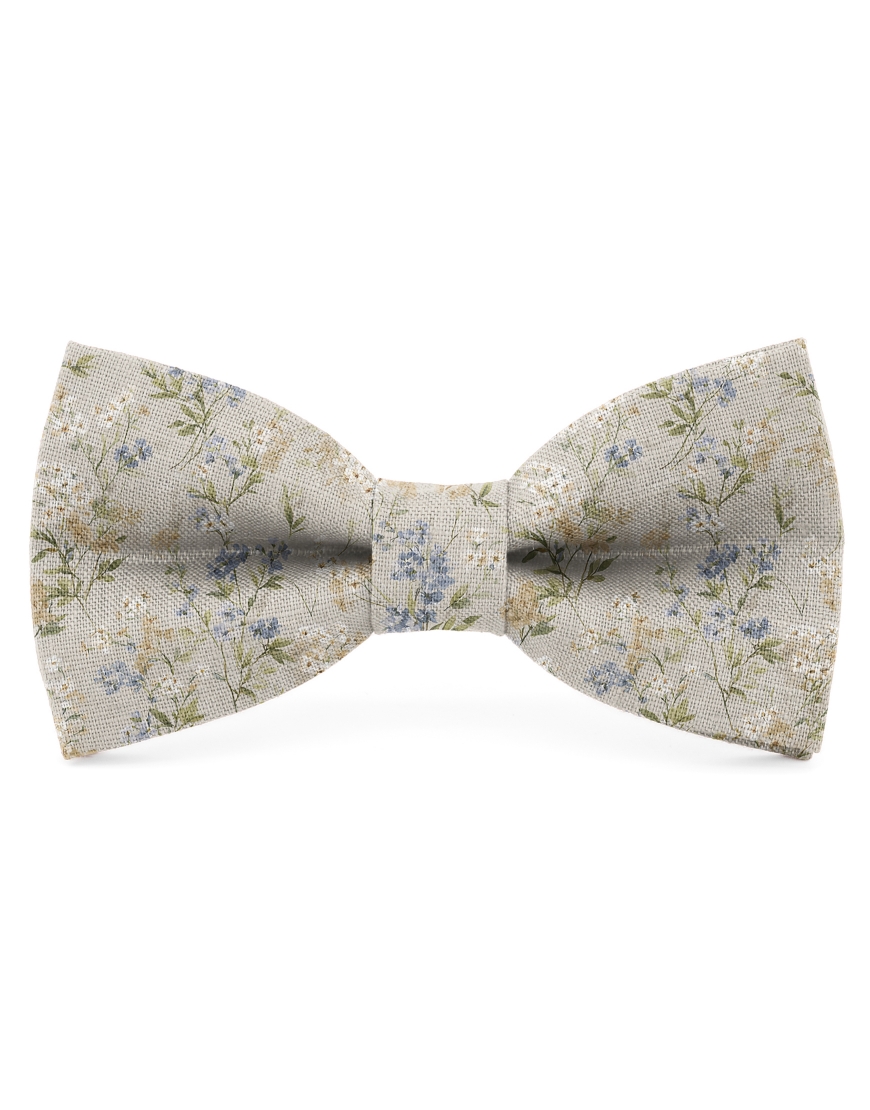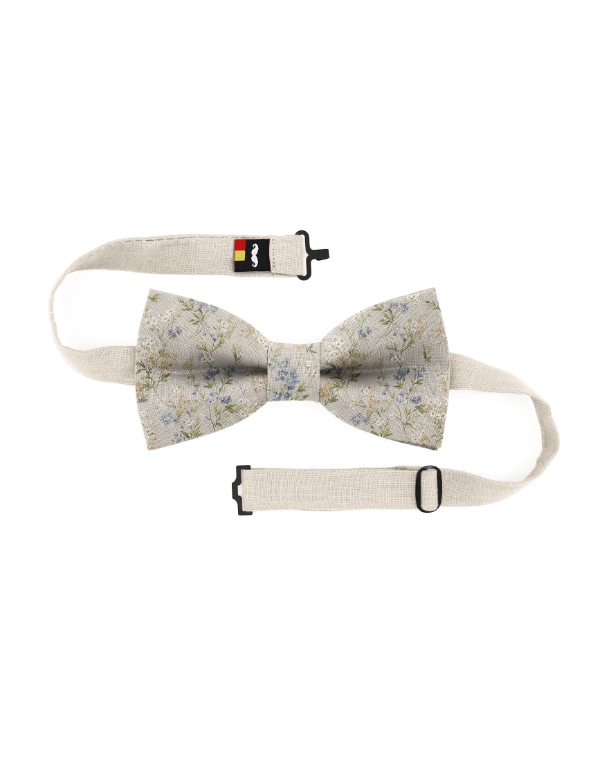 MIRAGE - NOEUD PAPILLON FLEURI EN LIN - BEIGE, BLEU & VERT