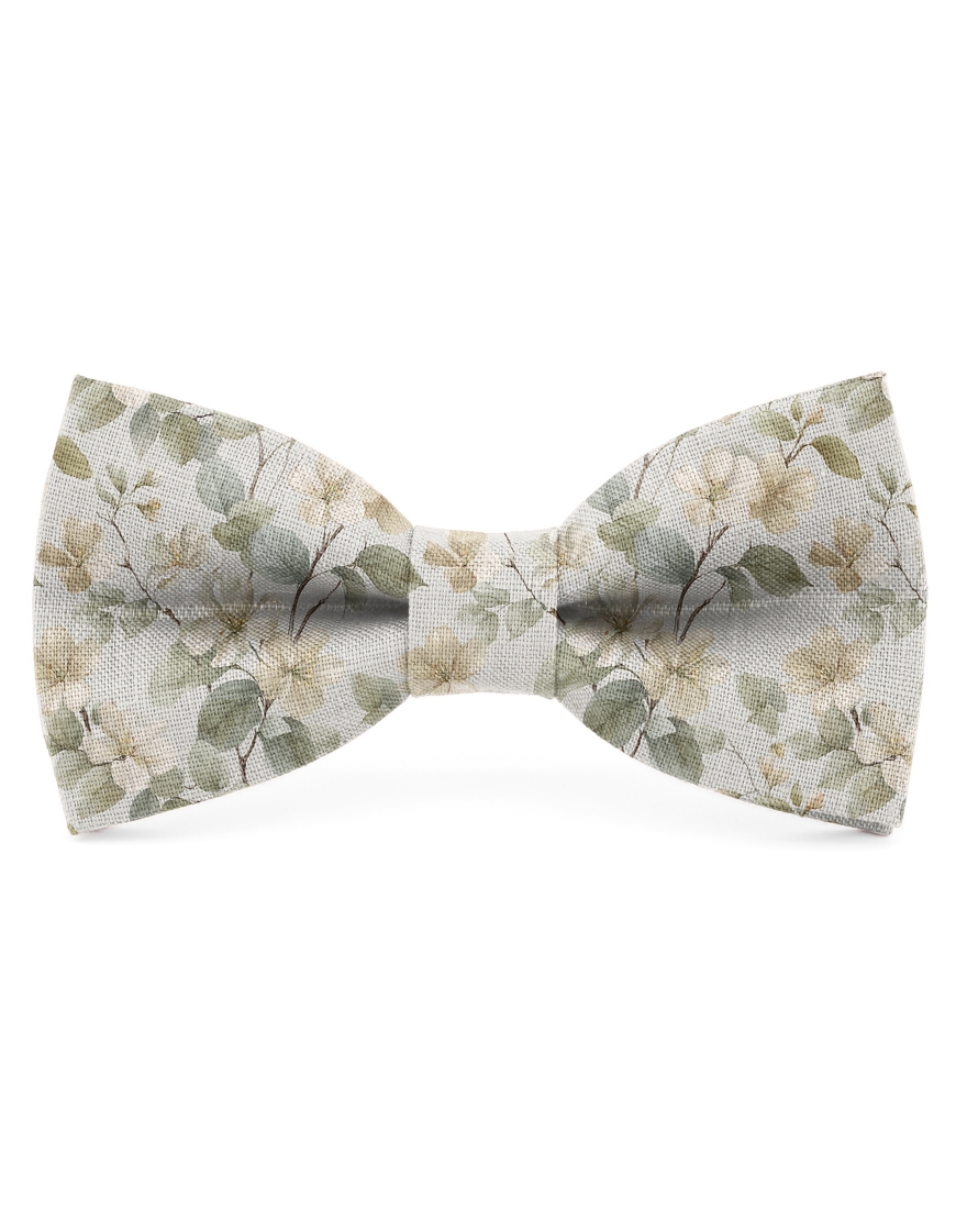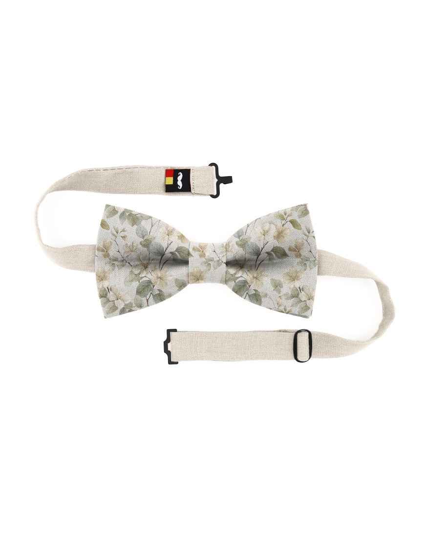 MEMORY - NOEUD PAPILLON FLEURI EN LIN - BEIGE & VERT SAUGE
