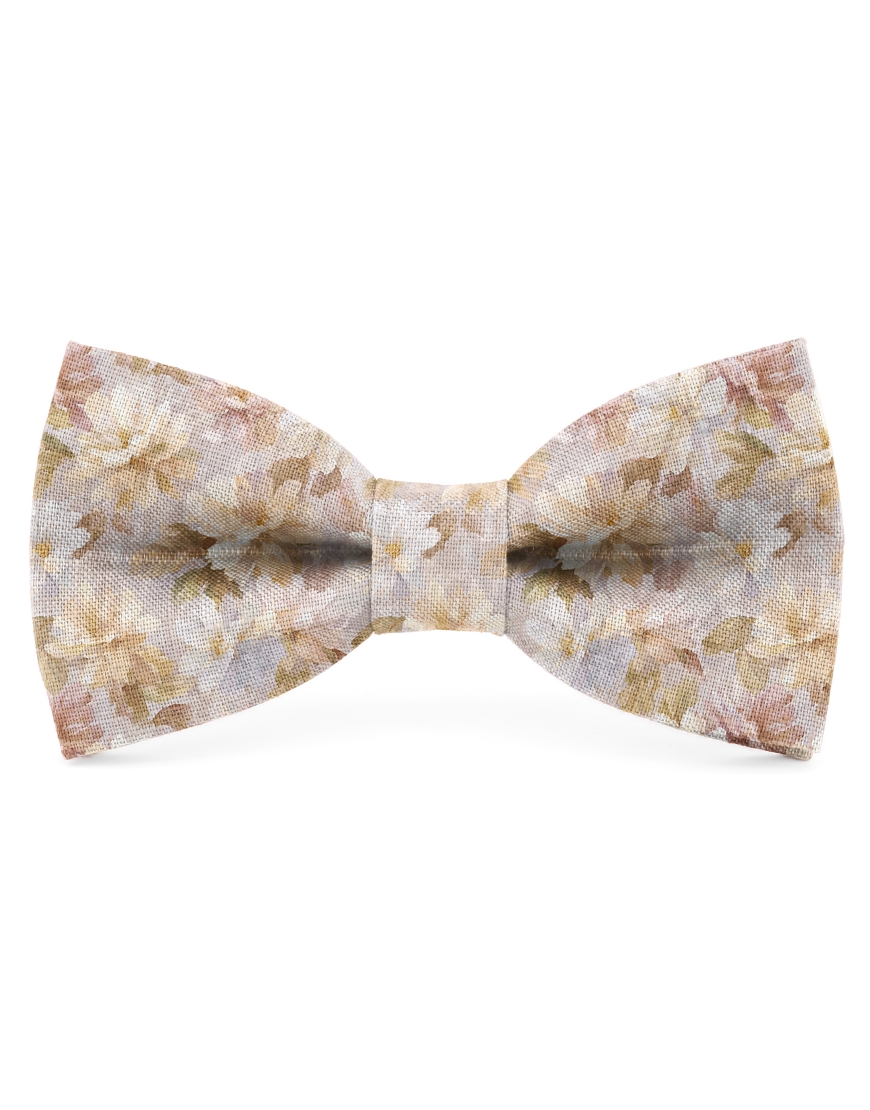 AURA - NOEUD PAPILLON FLEURI EN LIN - BEIGE & TERRACOTTA