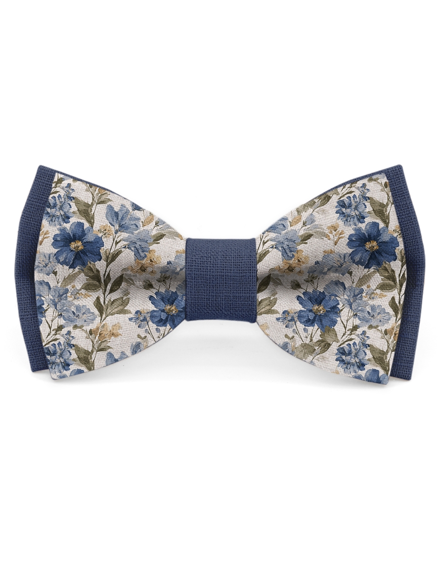 WONDER - NOEUD BICOLORE FLEURI EN LIN - BEIGE & BLEU