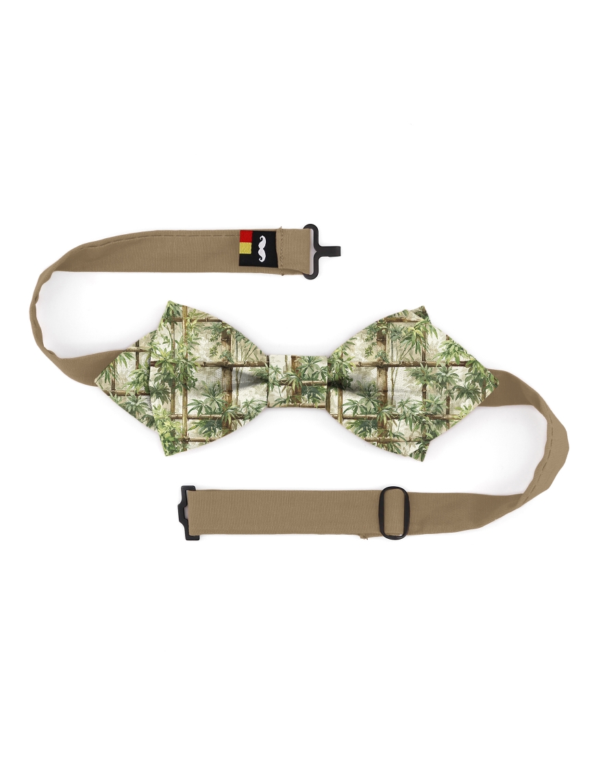 SHIJO - NOEUD PAPILLON FLEURI - DIAMOND - VERT ET BEIGE