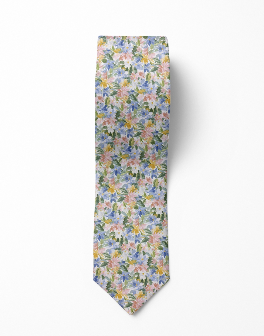 JAMSIL - CRAVATE FLEURIE - VERT, BLEU, ROSE & JAUNE