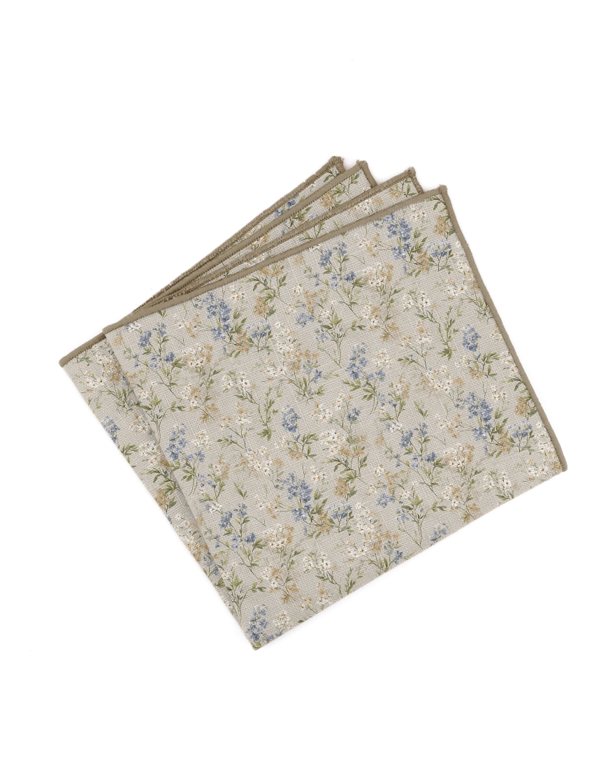 MIRAGE - POCHETTE FLEURIE EN LIN - BEIGE, BLEU & VERT